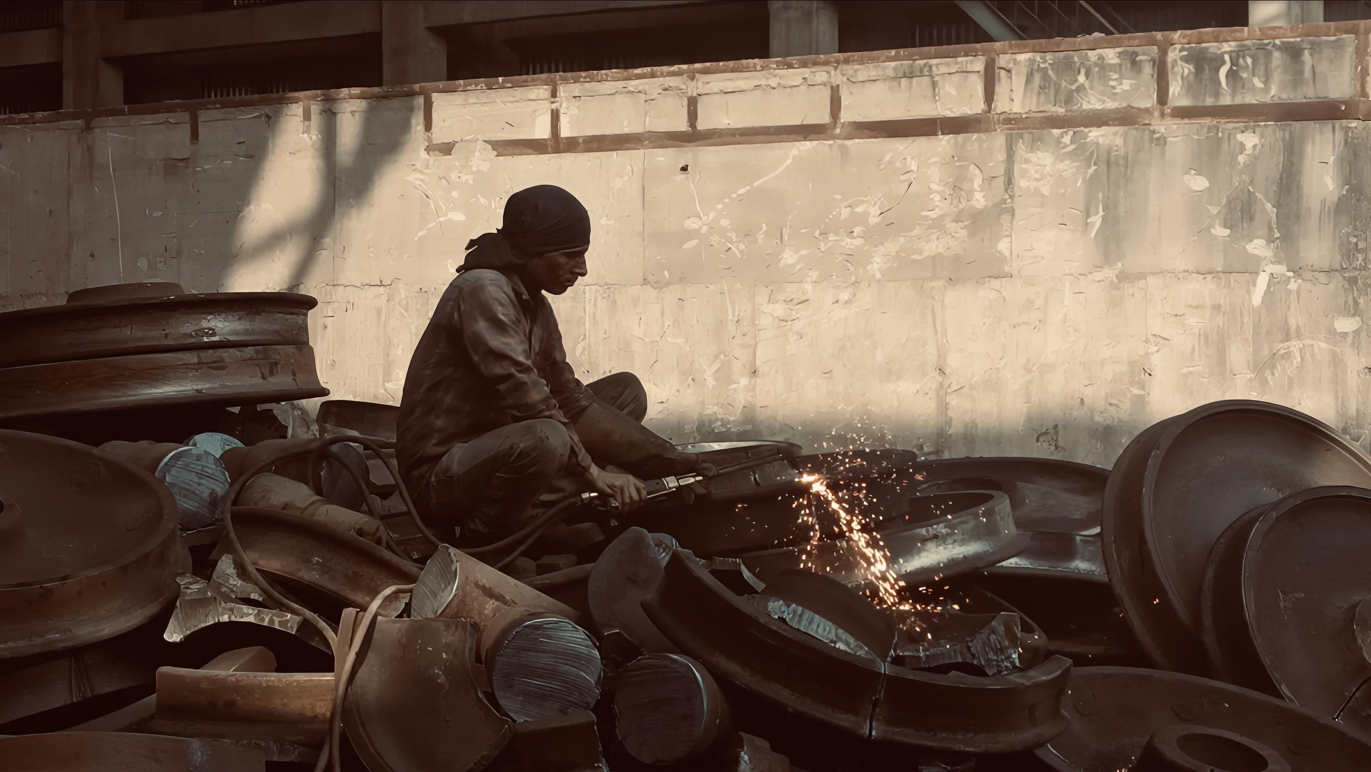I hold steady, my pulse matching the beat of machinery hard at work. The smell of iron fills my lungs, and the warmth of the forge keeps me going through every moment.