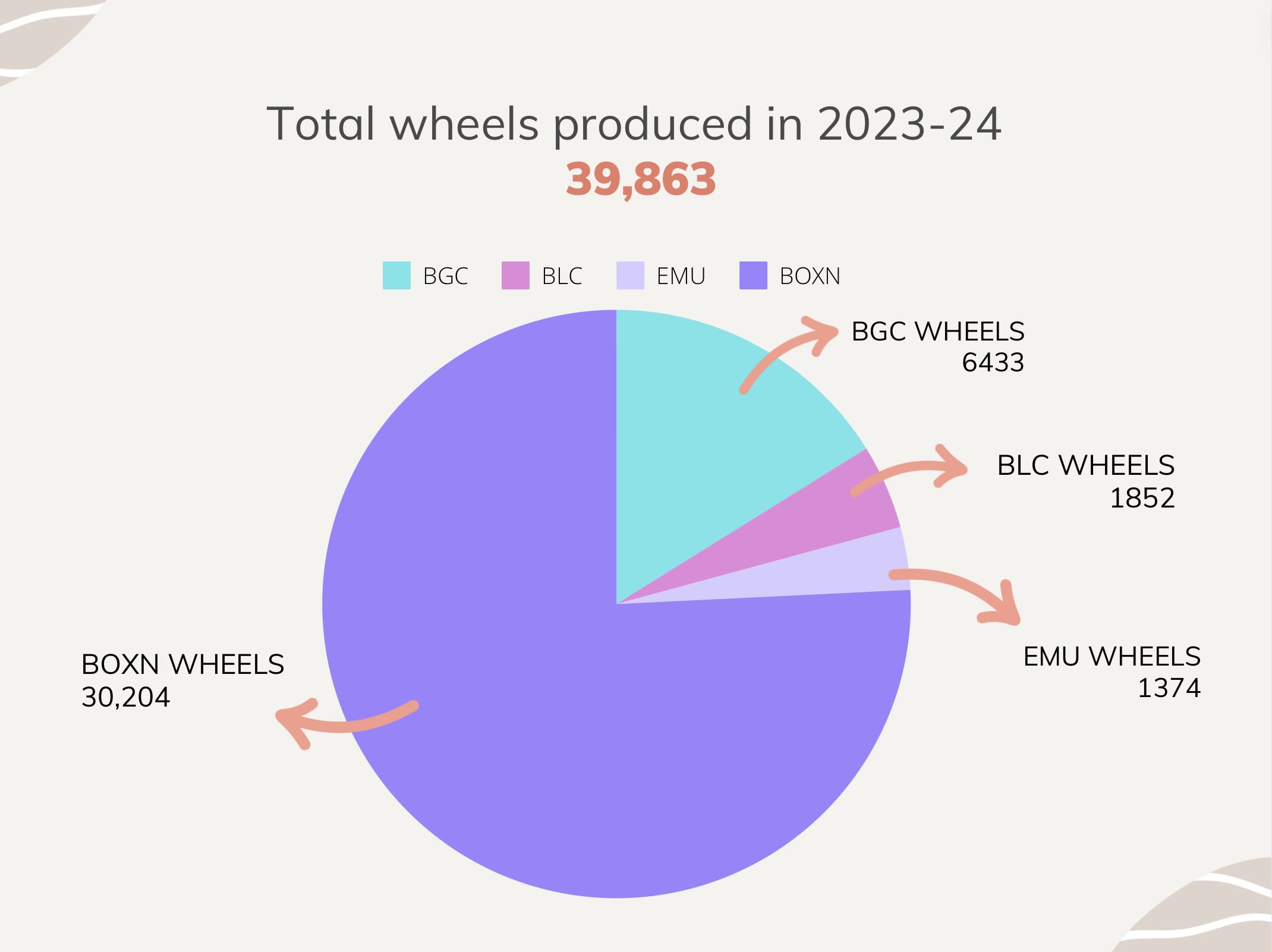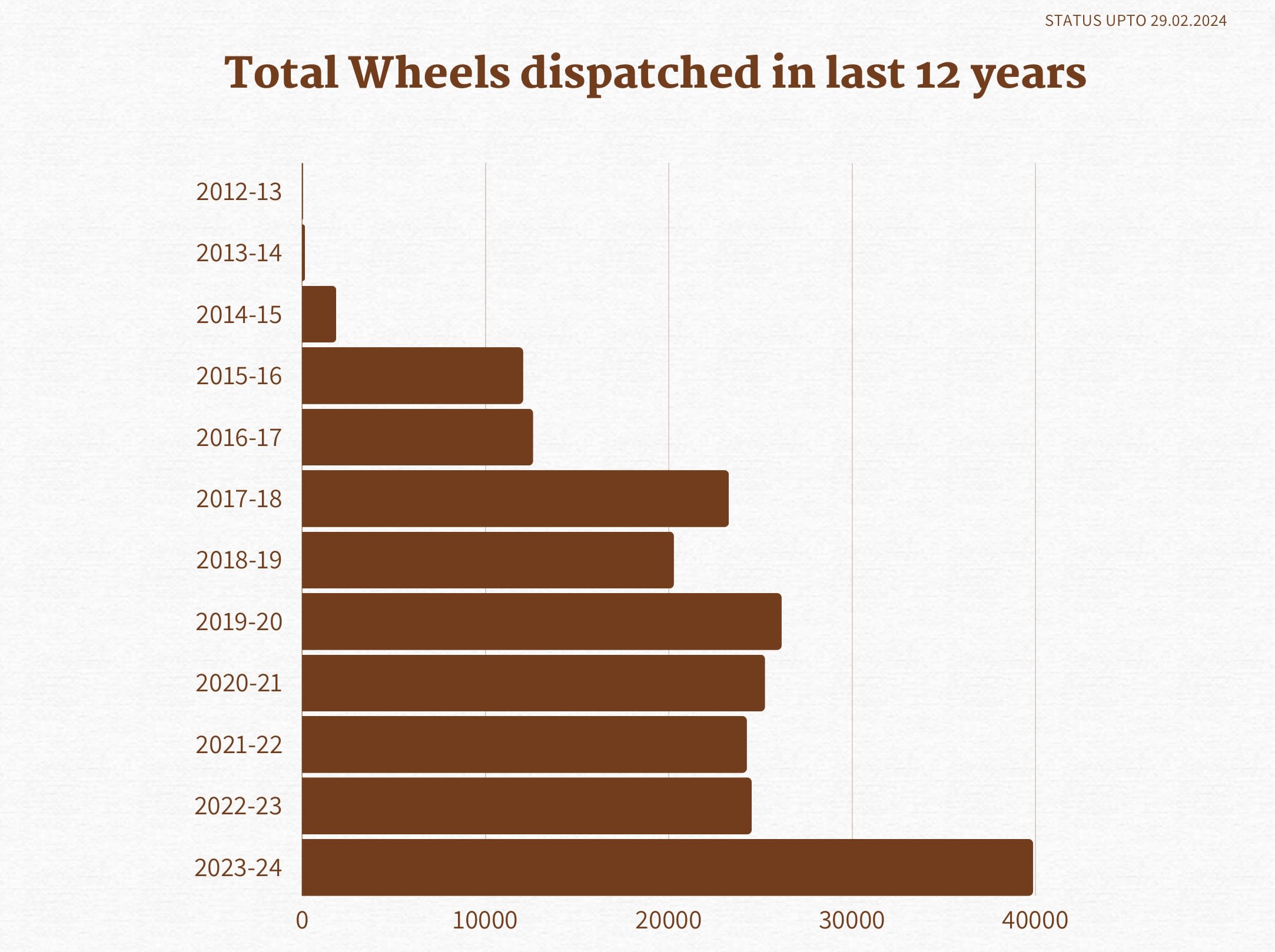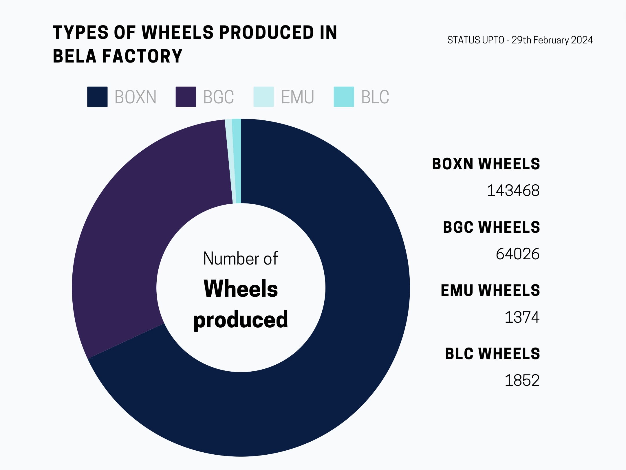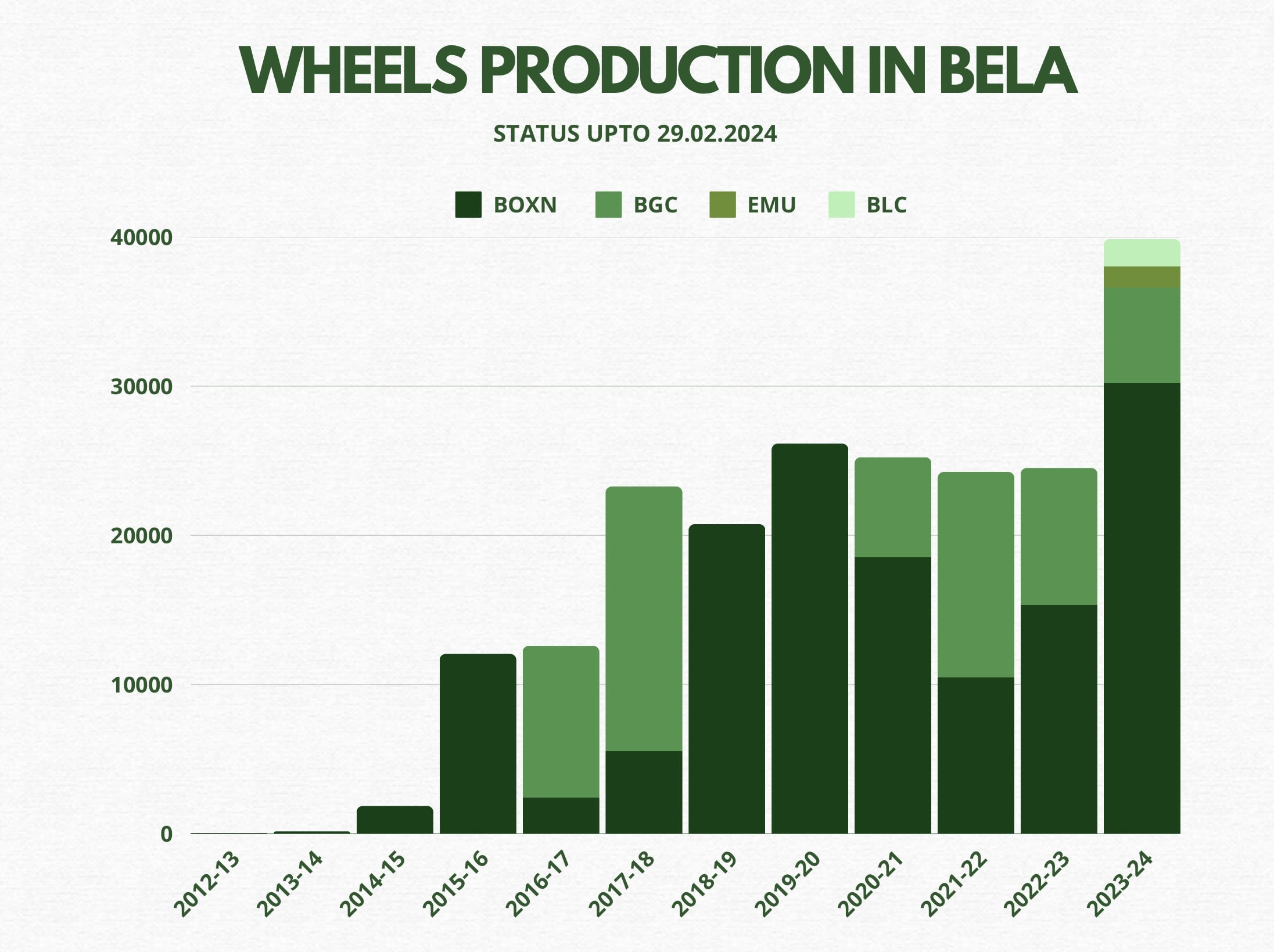 Let’s look at the Year-wise production of wheels at Bela Plant